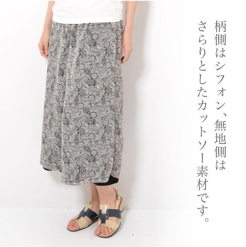 柄側はシフォン、無地側はさらりとしたカットソー素材で1枚で全く違うスタイリングが楽しめます。
