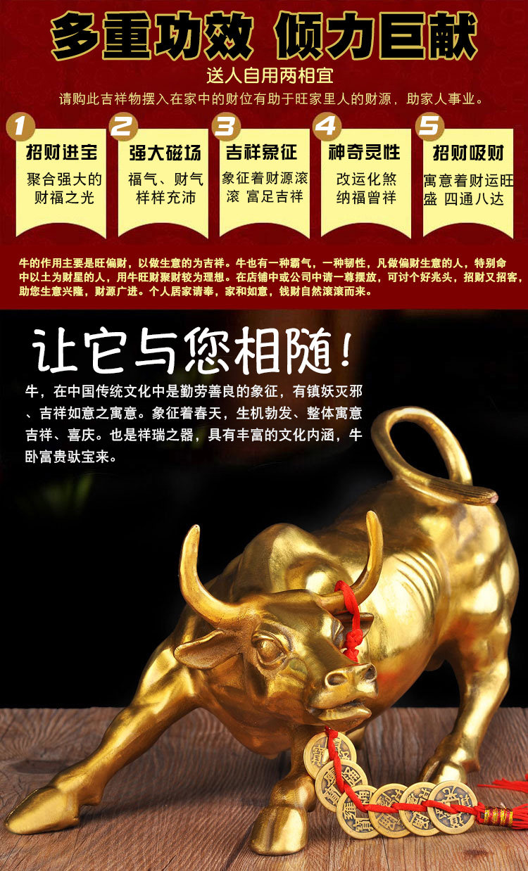 风水阁纯铜铜牛摆件华尔街牛大号生肖招财风水工艺品开业牛气冲天