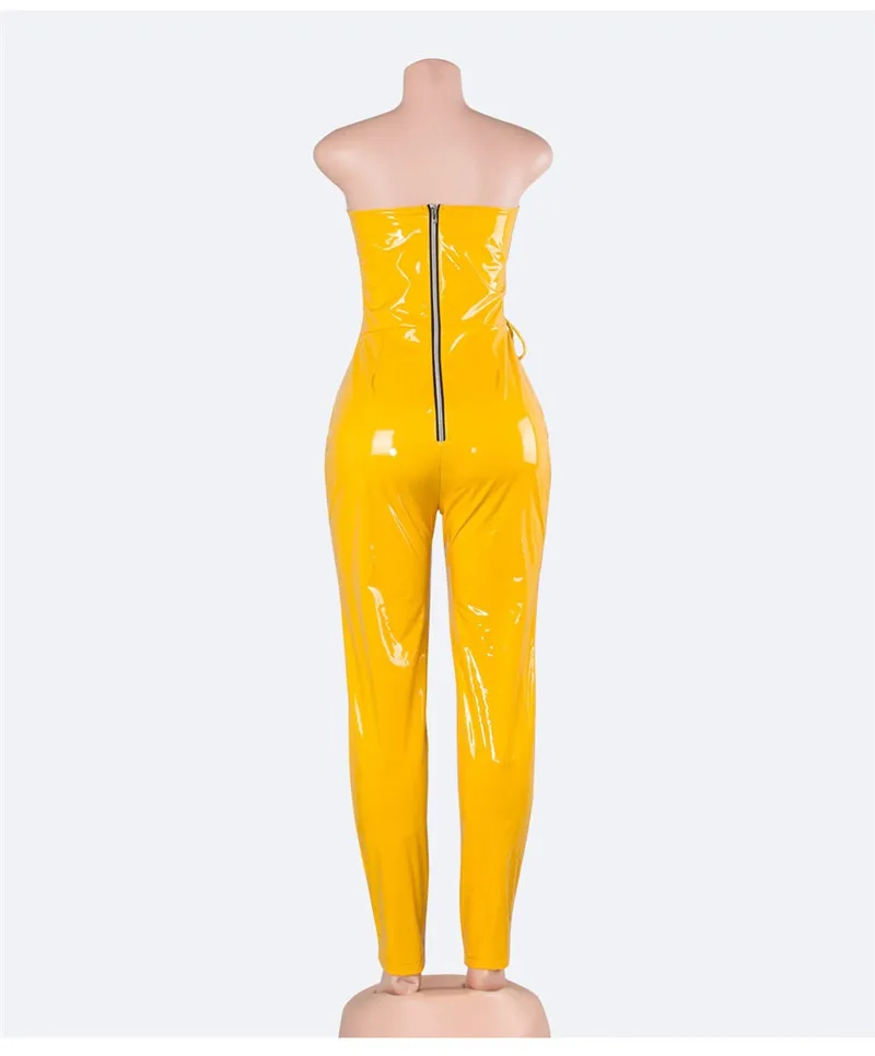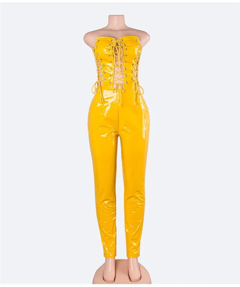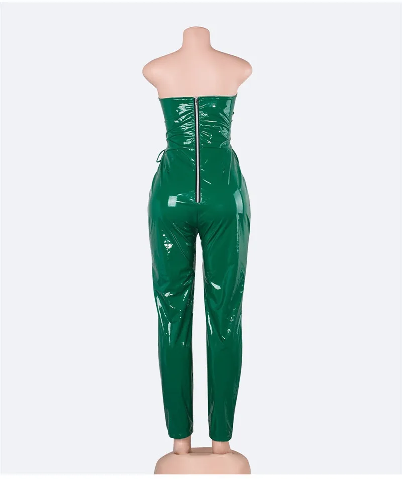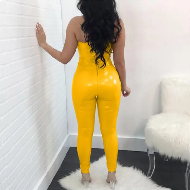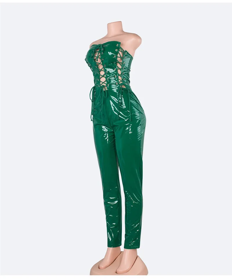 Decoration:PU Leather Rompers jumpsuit women sexy long junpsuit