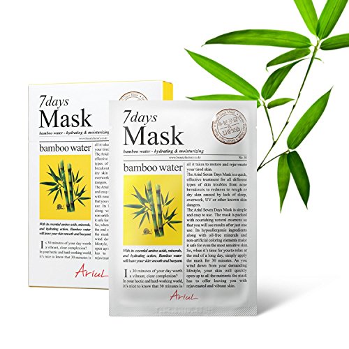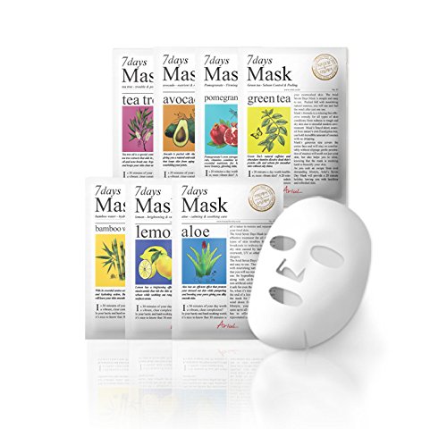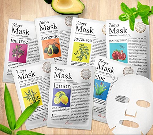 -. Feature : 7 types of natural ingredients on each face mask to nurture and protect your face. / TENCEL sheets / No mineral oils or artificial colors added / Product of South Korea / Includes: 1.Bamboo water 2.Aloe 3.Green tea 4.Tea tree 5. Pomegranate 6. Avocado 7. Lemon