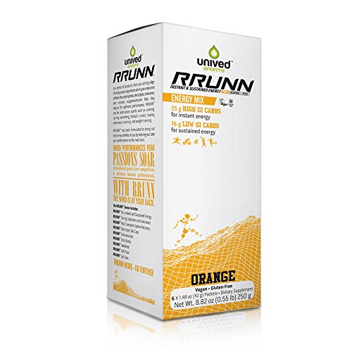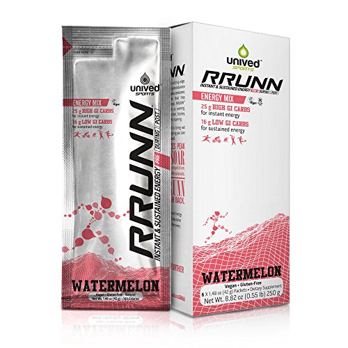 -. Title : Unived RRUNN Pre Energy Sports Drink Mix, Instant & Sustained Energy, Watermelon Flavor, Box of 6 Packets (0.55lbs, 252g)