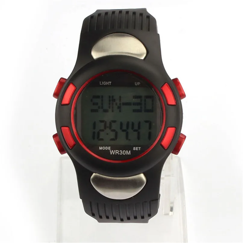 Feature:Complete Calendar,LED display,Auto Date,Week Display,Water Resistant,Heart Rate Monitor,Back Light,Chronograph,Swim,Alarm