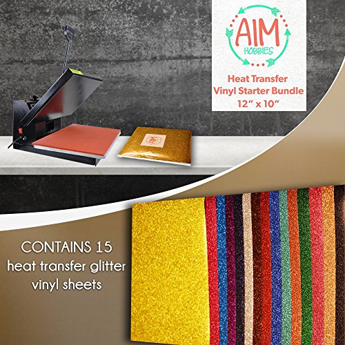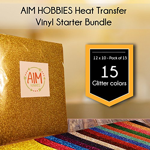 AIM HOBBIES Heat Transfer Glitter Vinyl Starter Bundle 12 x 10 - 15 Pack of Assorted Colors