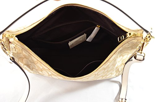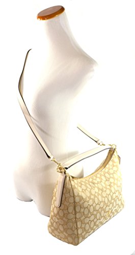 -. Feature : Made of Signature jacquard / Removable and adjustable crossbody strap, wear crossbody or over the shoulder / Zip-top closure, inside zip, cell phone and multifunction pockets / Handles with 5" drop, Longer strap with 20 1/2" drop for shoulder or crossbody wear / 14 1/4" (L) x 8 1/2" (H) x 5" (W)