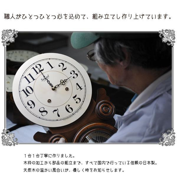 | 1台1台、職人が丁寧に組み立てし作り上げた振り子時計です。時打ち機構ですので毎正時と毎30分に時をお知らせします。昔ながらの方式でピアノ線を小槌が叩きます。飾り部分を大きくとり存在感ある高級モデルです。すべての部品を国内にて調達し、加工、組み立てしています。国産クォーツ製。 |