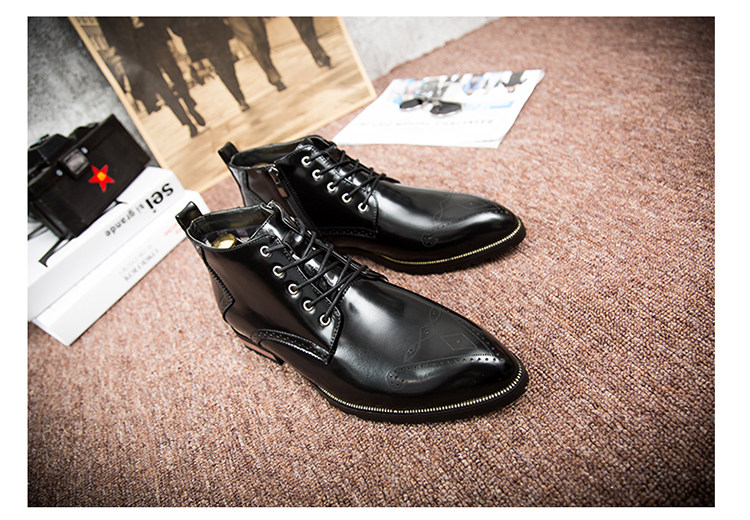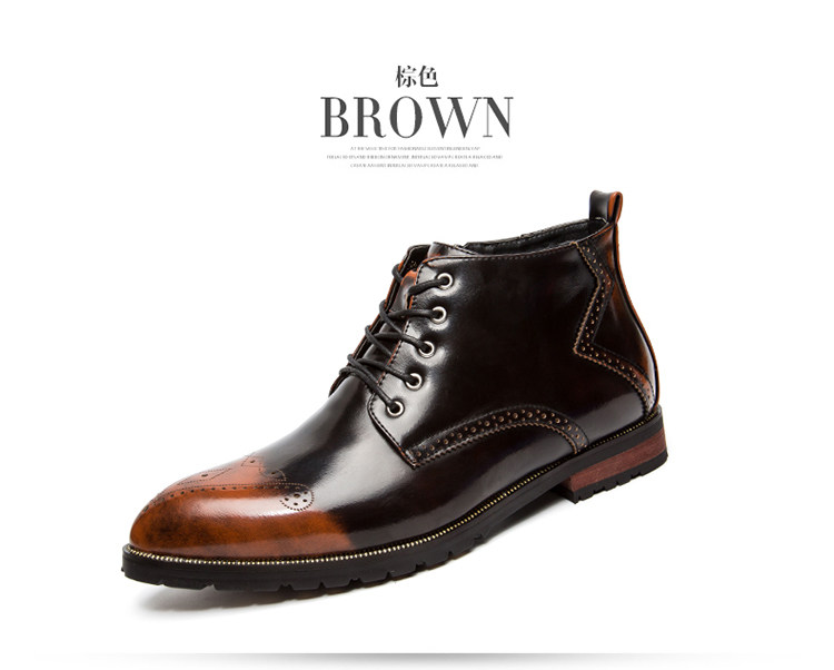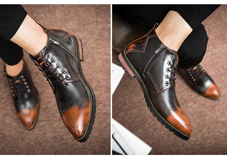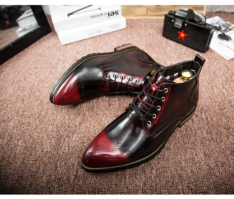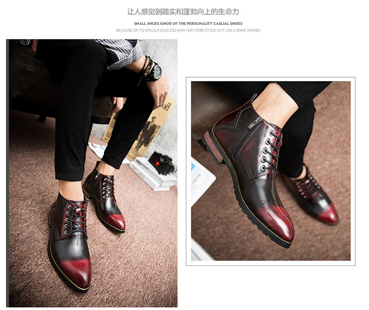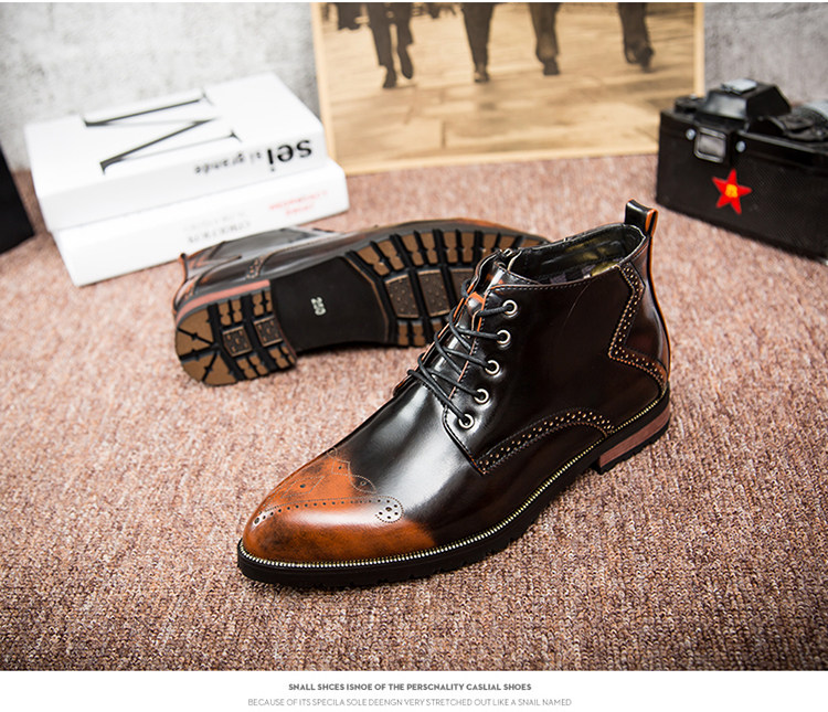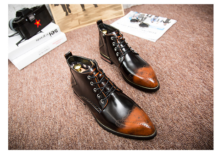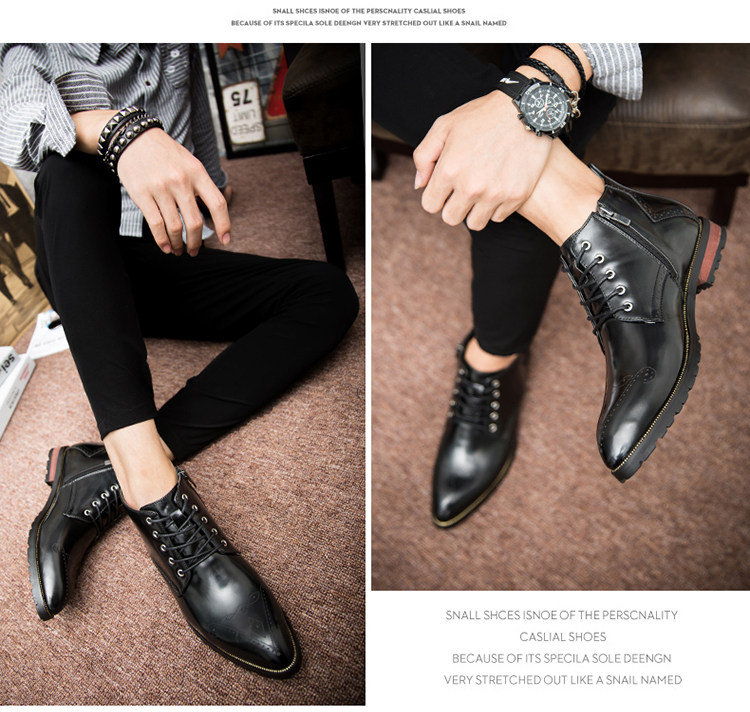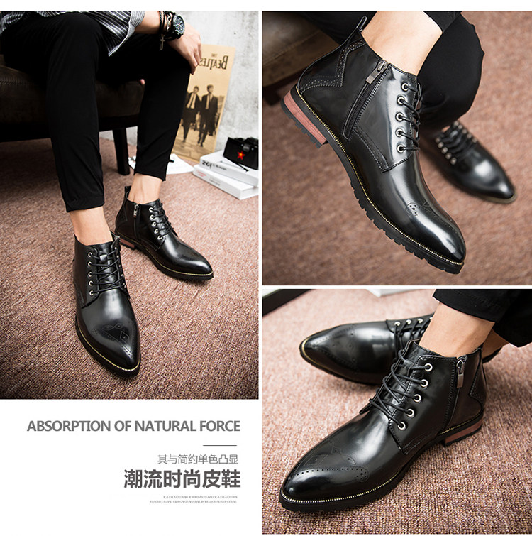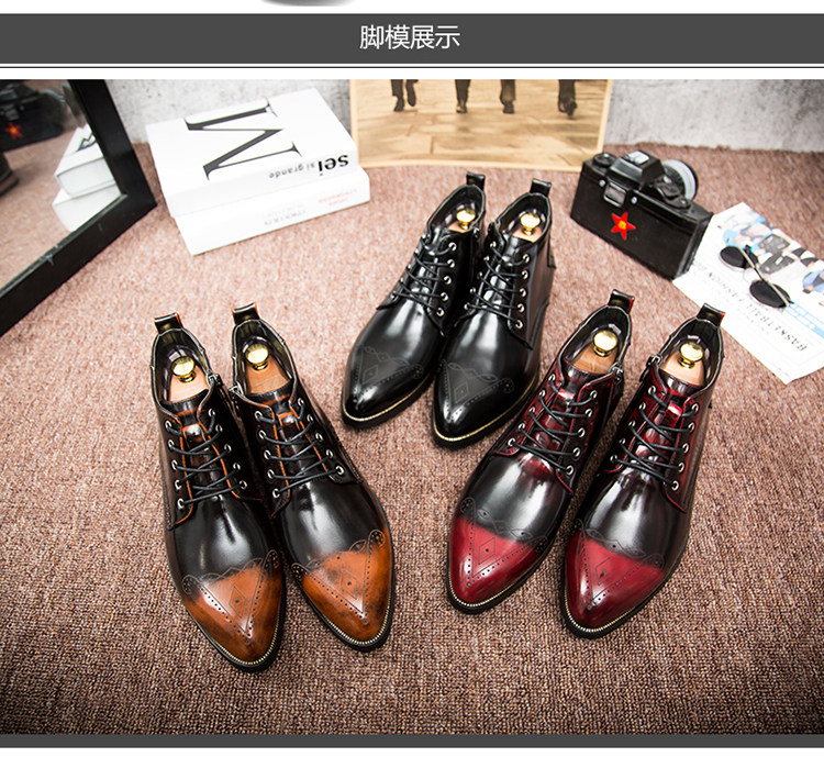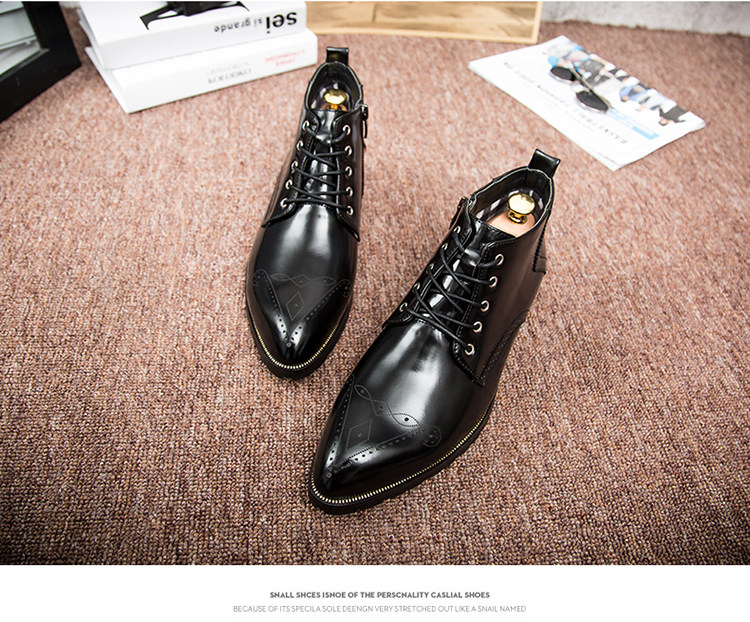 秋冬男士休闲高帮皮鞋英伦尖头皮靴百搭复古潮流短靴夜店结婚皮鞋