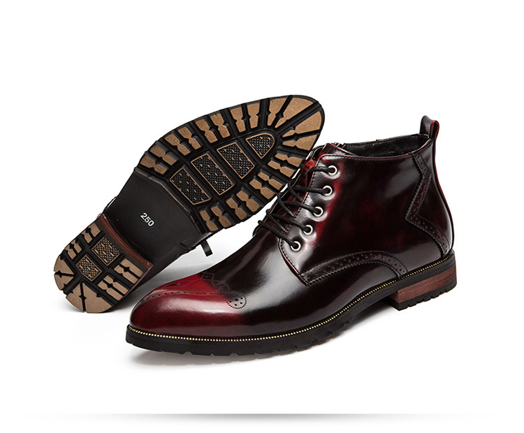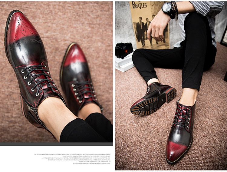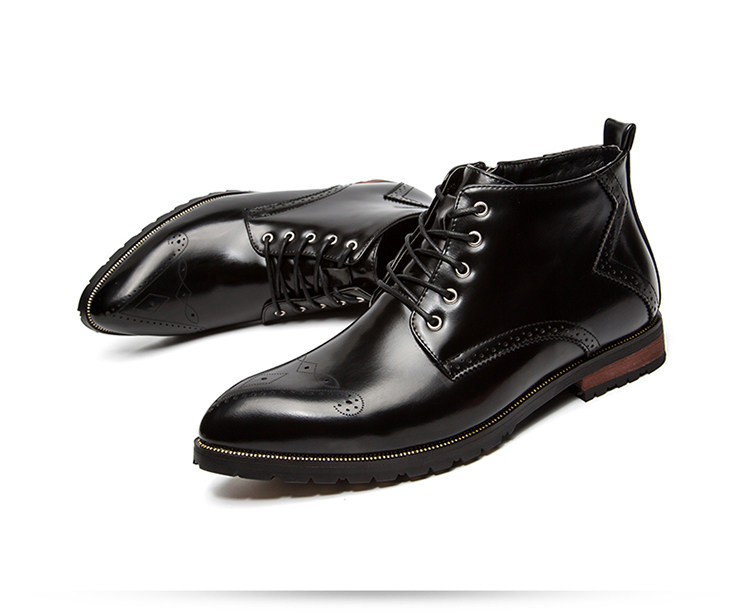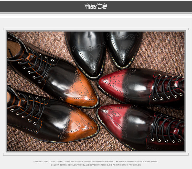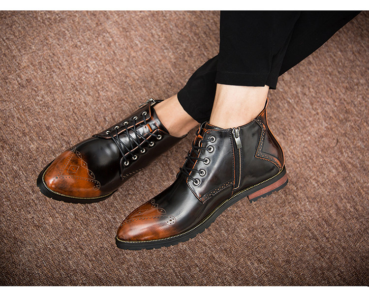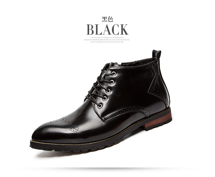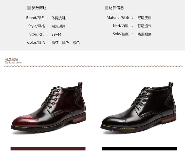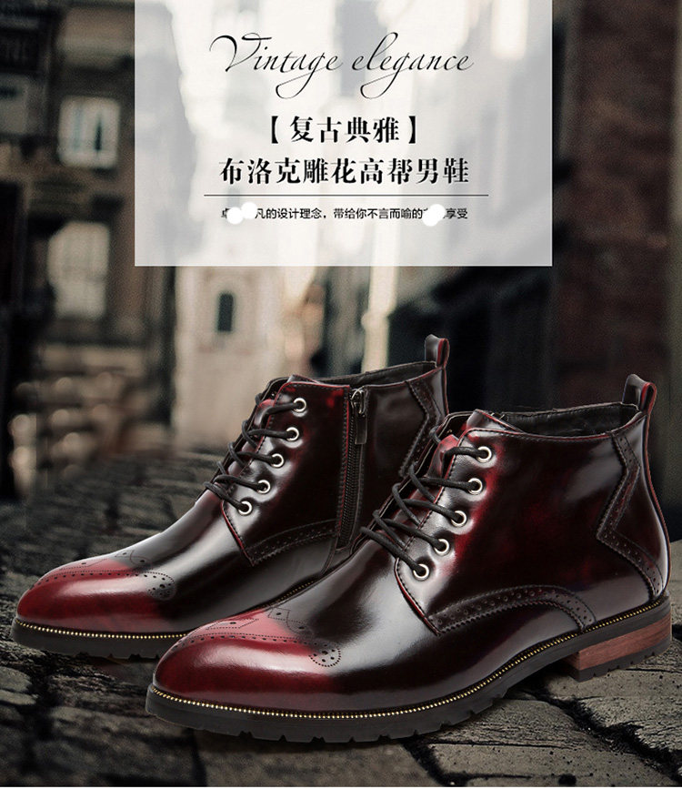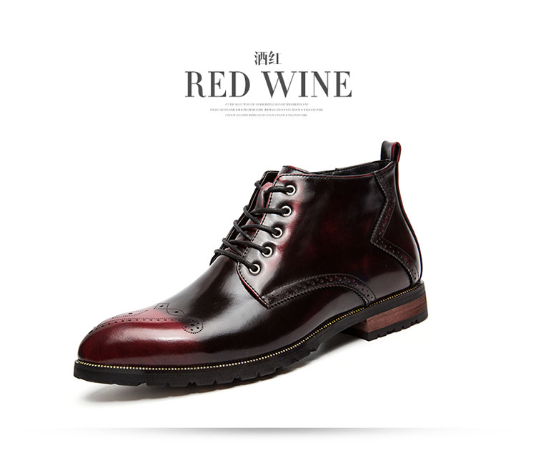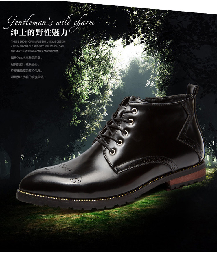 秋冬男士休闲高帮皮鞋英伦尖头皮靴百搭复古潮流短靴夜店结婚皮鞋