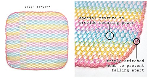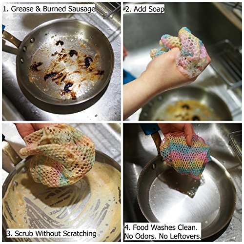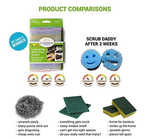 - Feature : ✓ VERY SANITARY: Finally... A heavy duty scour scrub pad to replace steel wool sponges that unravel and turn nasty. Your new scourer will scrub away tough burned stains on dishes, cast iron, stainless steel and other messes without building up mildew, rust or unraveling like a steel sponge. / ✓ HEAVY DUTY SCOURER: Use to tackle tough burned on messes and stains. Unique interwoven mesh design cuts into messes with ease and washes out quickly. / ✓ LOW MAINTENANCE: Dishwasher safe for easy cleaning and disinfecting makes this a great steel scourer pad replacement. / ✓ FOOD DOES NOT STICK = NO ODORS: No more smelly sponges or scouring pads. Even eggs and cheese do not stick. Quick drying prevents foul odors from bacteria growth. / ✓ MADE IN KOREA. High quality finish. Quality over quantity. Reduce landfill with quality products that last a long time and does it's job.