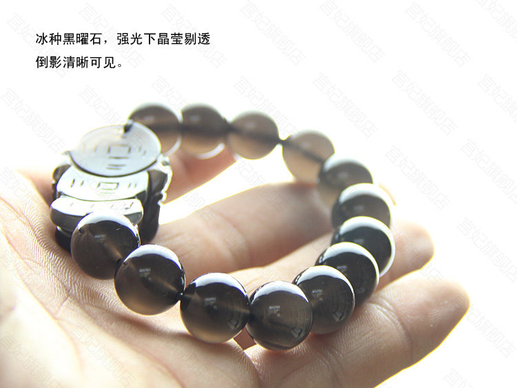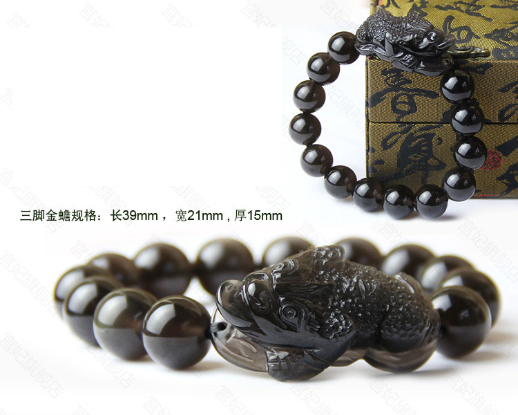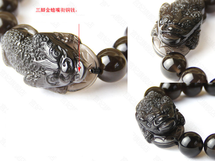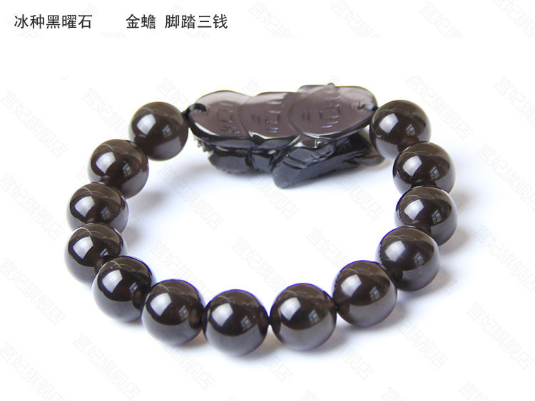冰种黑曜石三足玉石金蟾手链男女款三蟾赐瑞赐福吉祥物