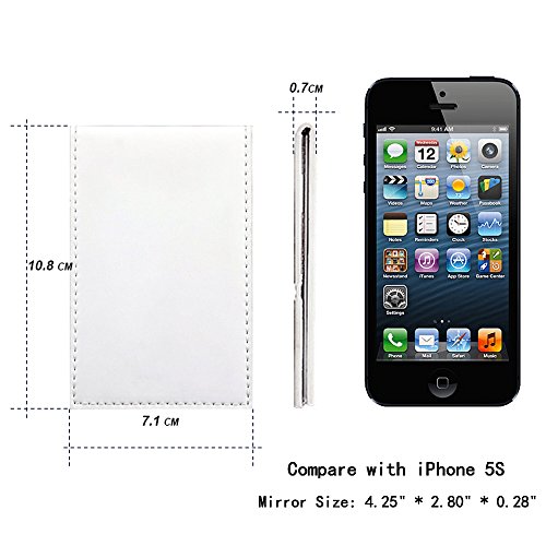 Boshiho Heavy-duty Stainless Steel Mirror Small Personal Makeup Mirror in Genuine Leather Case Ultrathin Travel Mirror Camping Mirror for Emergency Signaling