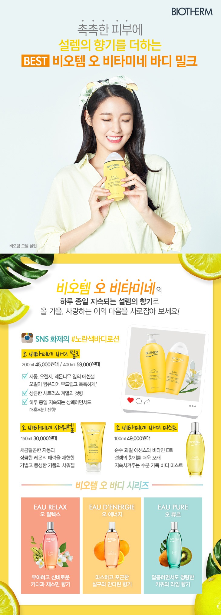 당신의 하루를 상쾌함으로 깨워줄 레몬, 자몽, 상큼한 시트러스 향의 바디밀크