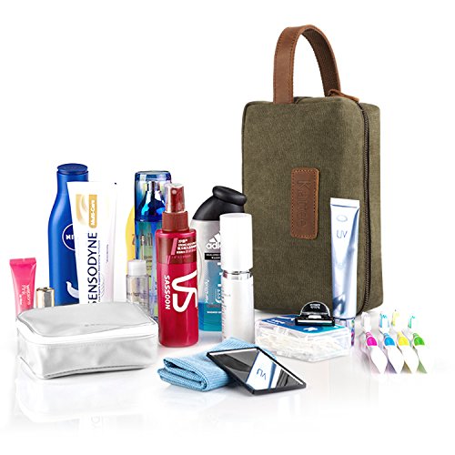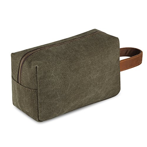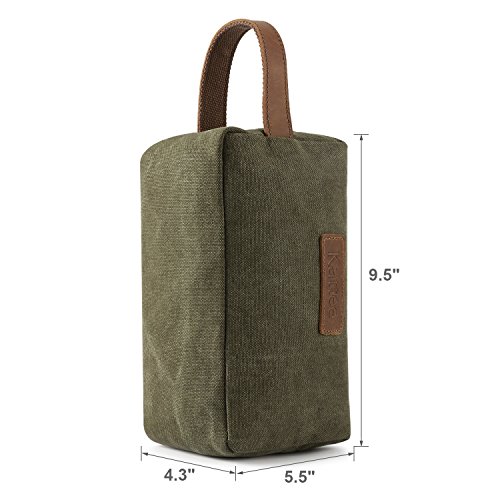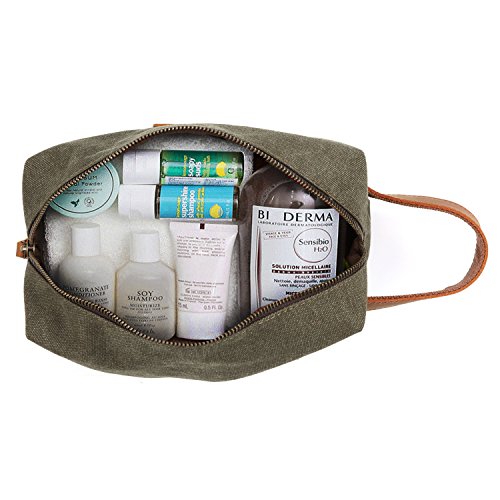 -. Feature : High quality material: Made out of easy-wash canvas, soft nylon internal lining, genuine cow leather stitching handle / Zipper closure, bronze zippers are smooth and easy to use / Perfect capacity: 9.5 x 4.3 x 5.5 inches. Large enough to hold all your travel bottles of shampoo, mouthwash, toothbrush, cosmetics, razor, etc / Easy carry with the carrying strap, perfect for travel, vacation, business trip and outdoor activity / This bag can be use for men or women to keep all your essential bathroom supplies in one place while travelling, or use it at home to store your craft supplies, small tools and other items