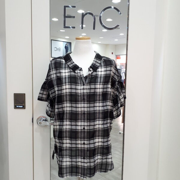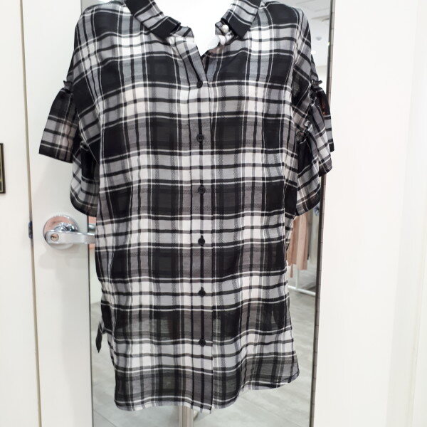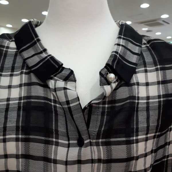 소재감좋고 블링한 예쁜체크블라우스입니다산뜻하면서도 여성스러운 느낌이 세련되보이며살짝 루즈한 스타일입니다