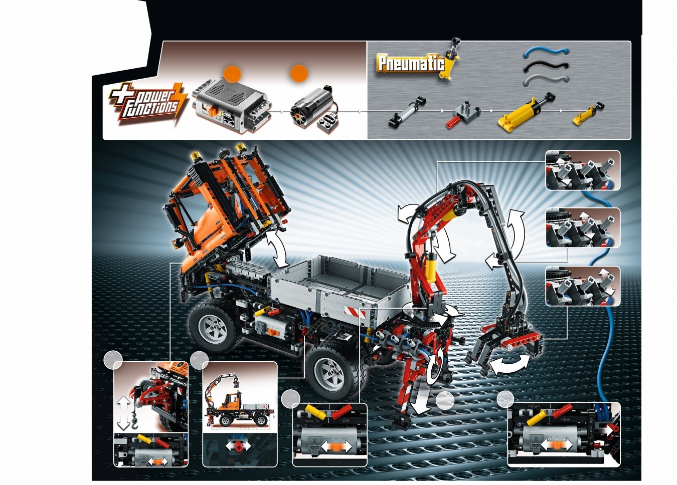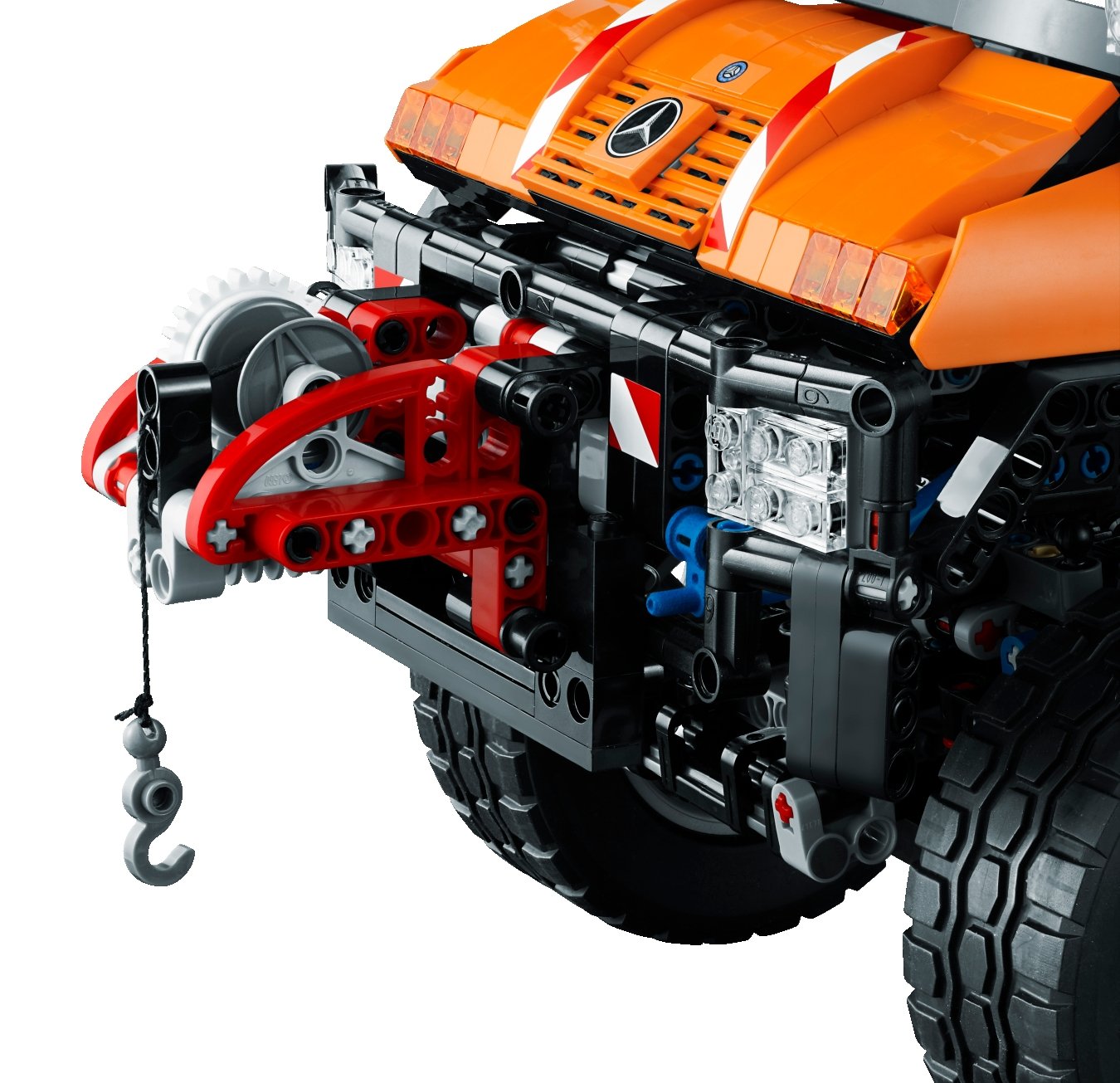The strongest multipurpose automobile, 'Unimog U400' appeared in the LEGO (R) technique! Power function (electric motor) allows you to freely move pneumatic cranes to grab things and activate recovery winches.