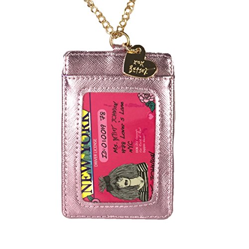 (Betsey Johnson)/Accessories/Wallets, Money Key Organizers/DIRECT FROM USA/Betsey Johnson Metallic Bow ID Case On A Chain Lanyard, Pink