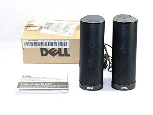 Genuine OEM Dell AX210 Black USB Wired 2.0 Computer Desktop Powered Stereo Multimedia Speakers 2-Piece Upgrade Part Numbers: R125K, R126K, X156C, X146C, H252D, AX210, 464-7184, 1.2 Watt Maximum Power Output, Amplifier Integrated with 1/8 Mini Audio Jack,