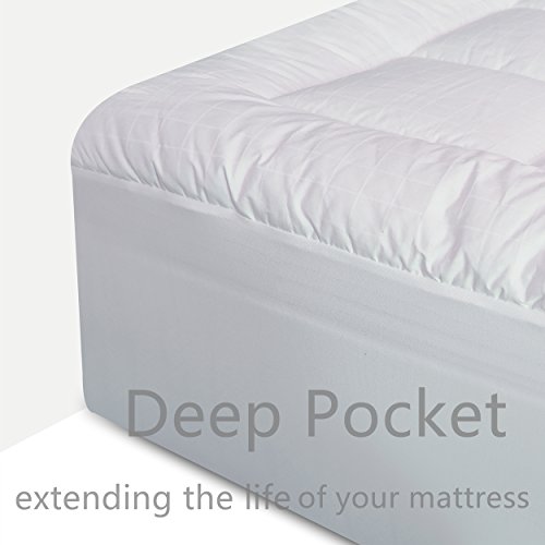 -. Title : Mattress Pad Cover with Fitted Skirt - Hypoallergenic - Cotton Top Mattress Topper Fits Up to 8”-21”
