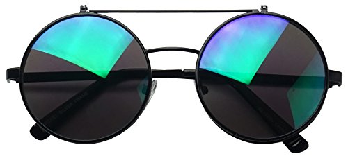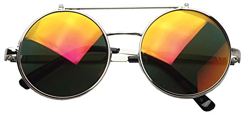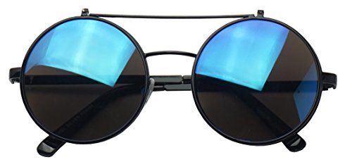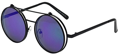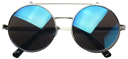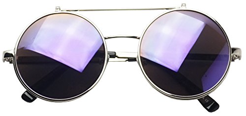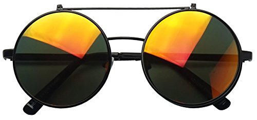 These awesome Django flip-up inspired sunglasses are coming in hot. They are crafted with a slim double bridge bar and mesmerizing flip up color mirrored lenses. These high fashion stylish sun shades are perfect for indoor and outdoor activities. No more need to take your stunning sunglasses off. With these you simply flip the cover lens up and continue to rock your fabulous look throughout your day. They are made with a metal based frame, classic metal hinges, English style nose pieces, and UV protected poly-carbonate lenses.Feature
