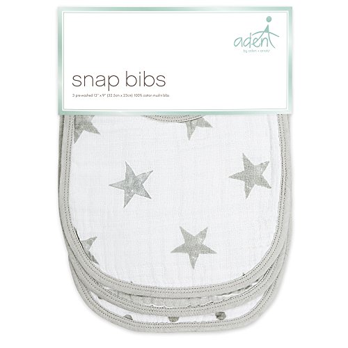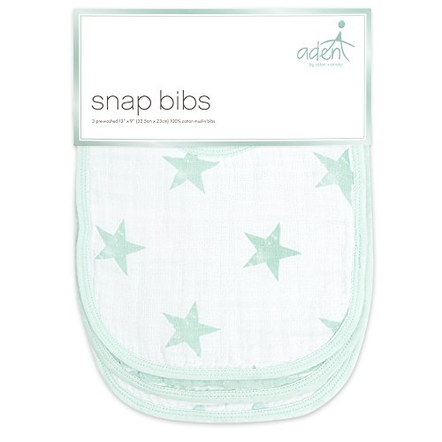 -. Title : aden by aden + anais Snap Bib, 100% Cotton Muslin, Soft Absorbent 3 Layers, Adjustable, 9” X 13”, 3 Pack
