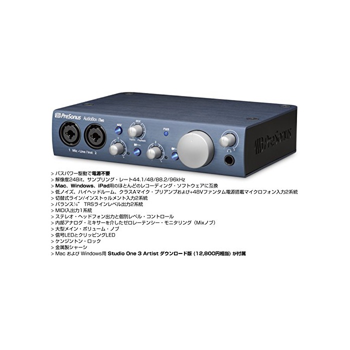 원본상품명: PreSonus プリソナス DTMセット AudioBox iTwo STUDIO [DAWソフトStudio One 3 Artist付]