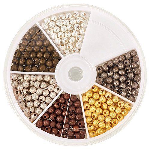 Pandahall 350pcs/box 6 Colors 4mm Brass Stardust Round Spacer Beads, Nickel Free, Mixed Color