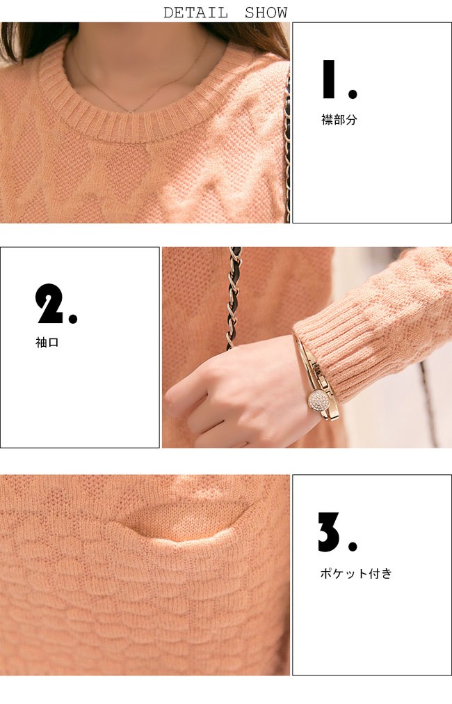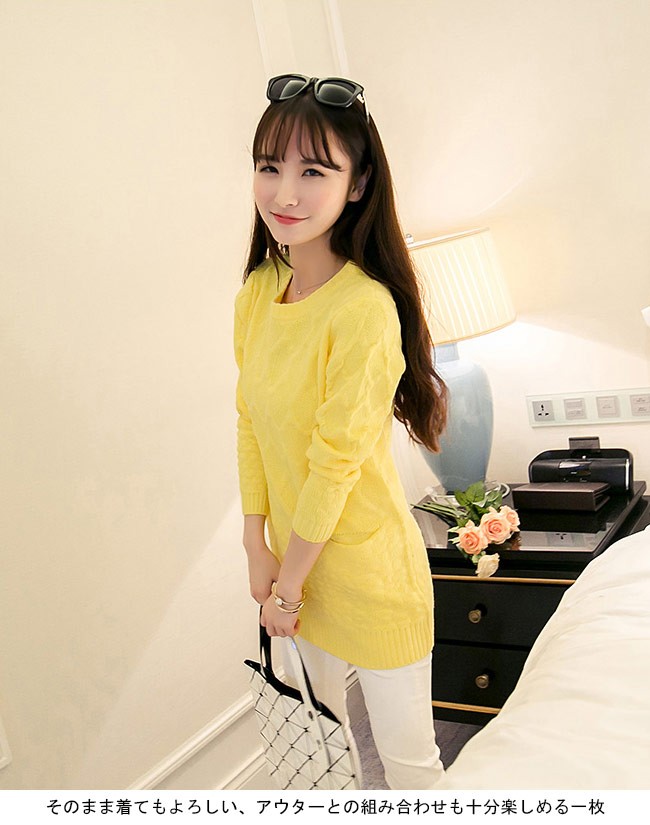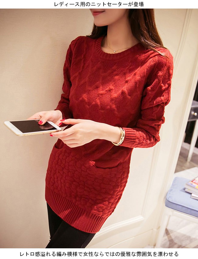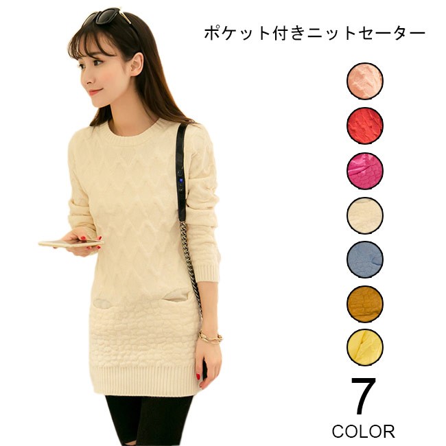 ニットセーター レディース ヒップ丈 長袖 ポケット付き 丸襟 女性用 春秋物 冬物 ニットトップス カジュアル カラバリ 着まわしレディース用のニットセーターが登場レトロ感溢れる編み模様で女性ならではの優雅な雰囲気を漂わせるポケット付きのデザインで可愛らしいアクセントを付けて、機能性もアップ糖度高めのカラバリは女性にピッタリヒップ丈に7色展開でコーデをより自由にさせるそのまま着てもよろしい、アウターとの組み合わせも十分楽しめる一枚カラー:1 2 3 4 5 6 7素材 ポリエステルサイズ(cm) FF 着丈73 バスト82ご注意:※サイズは平置きサイズです。素人採寸ですので、若干の誤差がございます、ご了承ください。