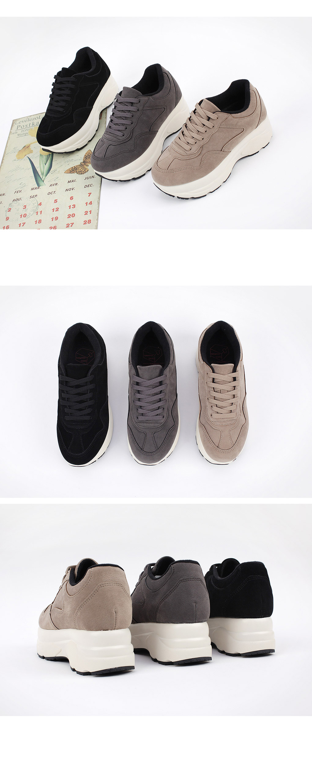 키높이 스니커즈 입니다 둥근 토우라인이 발을 가지런히 모아주어 착화했을때 발이 작고 갸름하게 보여지며 스웨이드 소재로 따뜻하며 멋스럽고 스타일리쉬한 매력이 있는 슈즈입니다 레이스업 스타일로 핏감 조절이 가능하여 발에 맞게 조절하여 신으실수 있습니다 스타일리쉬하고 캐주얼한 디자인으로 어떠한 룩에도 멋스럽게 잘 어울리며 다양한 코디에 매치하여 데일리슈즈로 신으시면 좋을꺼같습니다 활용도 만점의 데일리아이템 소개합니다.