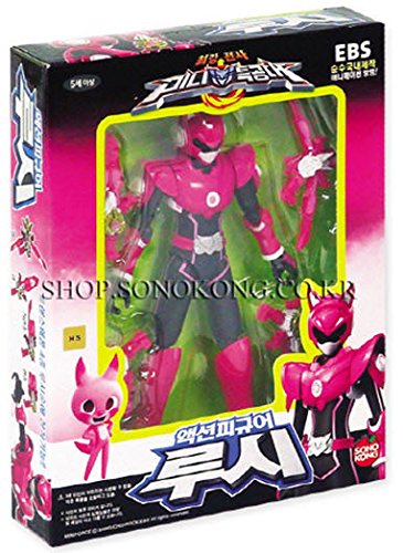 -. Feature : Miniforce Lucy Action Figure for Korea Transformers Rangers / Component: 1 figure, 4 weapons / Size: 13 x 17 x 4 cm / Weight: 200g / Additional components : superdaddy highlighter.