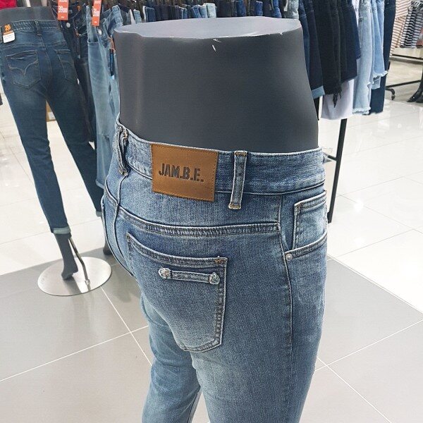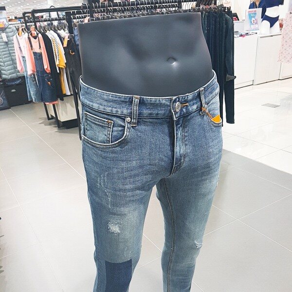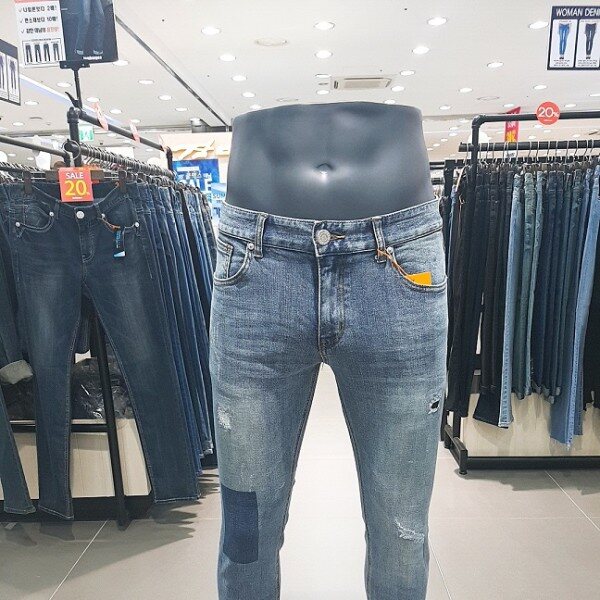 오른쪽 다리 부분 특이한 패치 디자인과 허리 뒷부분 X 선 벨트걸이가 인상적인 잠뱅이 가을 워싱 테이퍼드핏 청바지 입니다.진짜 특이하고 이뻐요 !!