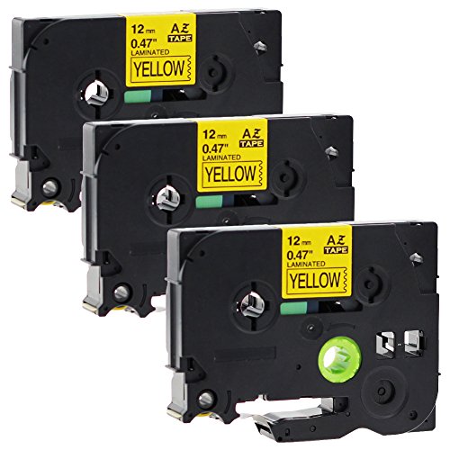 Anycolor Black on Yellow 12mm TZe Label Tape TZe-631 TZe 631 TZ-631 TZ631 TZ 631 Compatible for Brother P-Touch Label Printers (0.47" x 26.2 12mm x 8m TZe631 Pack of 3)