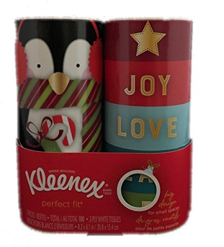 Studio : Kimberly Clark Publisher : Kimberly Clark Binding : Health and Beauty Product Description Save space with these Kleenex Perfect Fit tissues and celebrate the joyful holidays at the same time! Just in time for cold season. These round containers are not flimsy, built with a solid construction that can withstand bumps and bounces that occur during your day. Have tissues at the ready anywhere when these tissues take up such a small amount of space. Tissues are 2-ply and individual tissues measure 8.2 x 6.1 inches 0