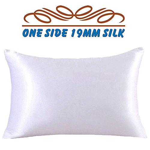 19 Momme Natural 100% Pure Mulberry Silk Pillowcase One Side Natural Silk Pillow Cover for Hair and Facial Beauty with Zipper 1pc (Standard, White)