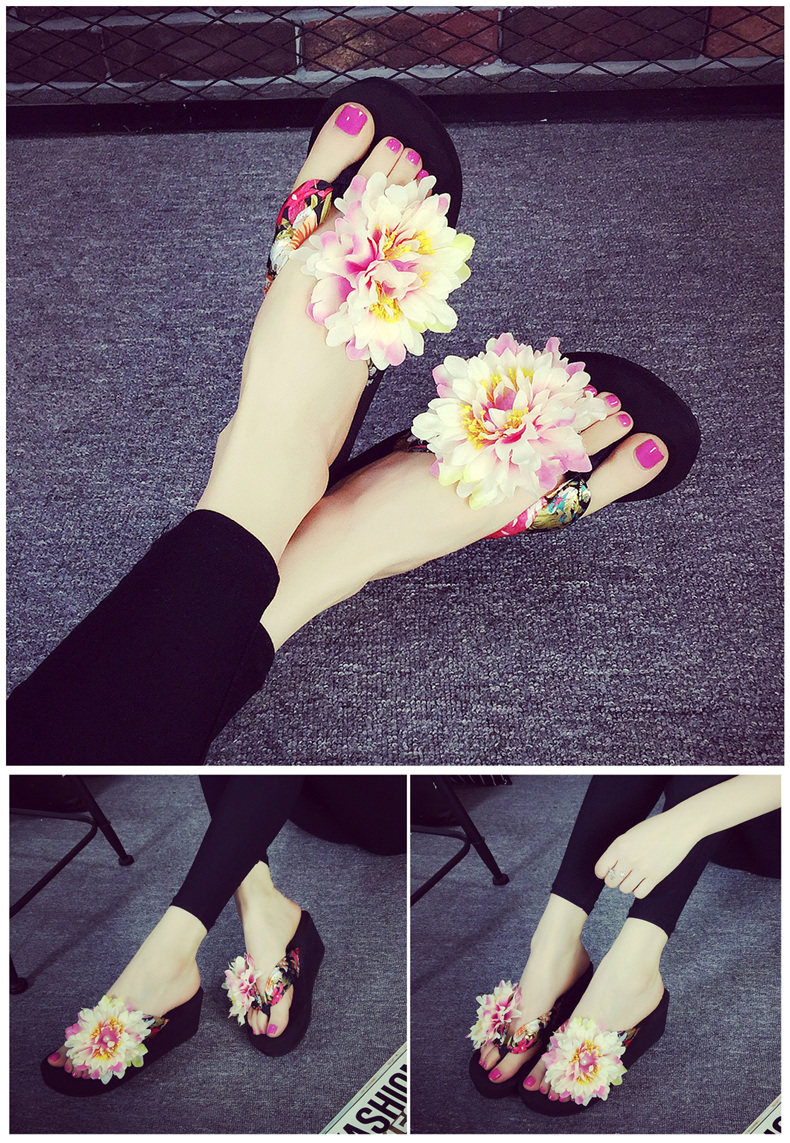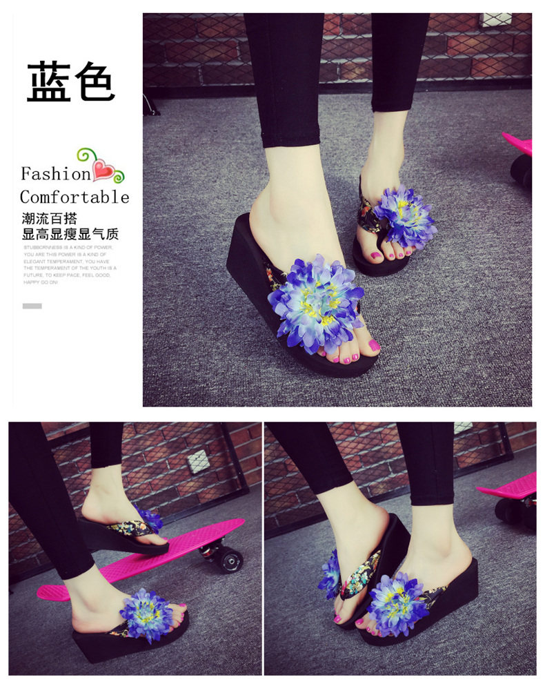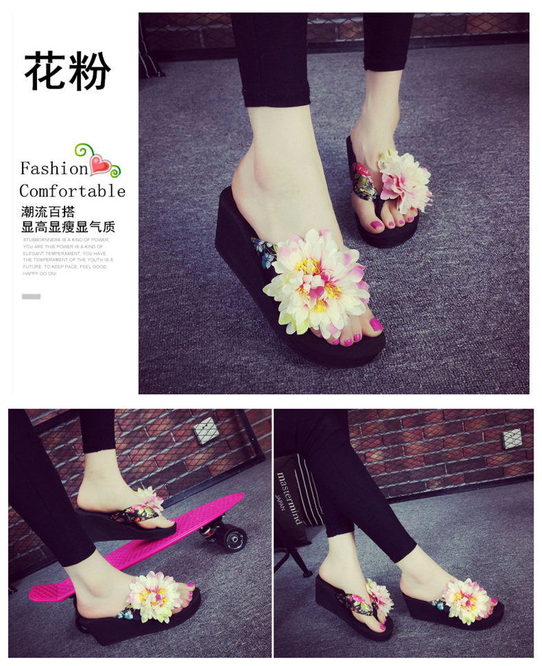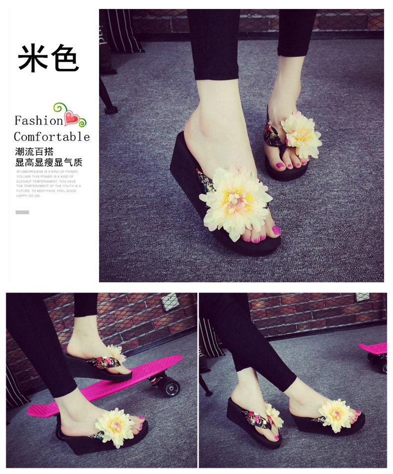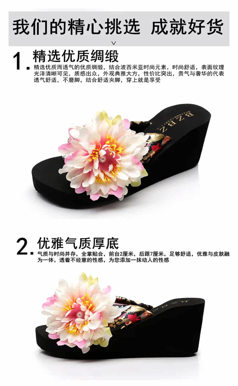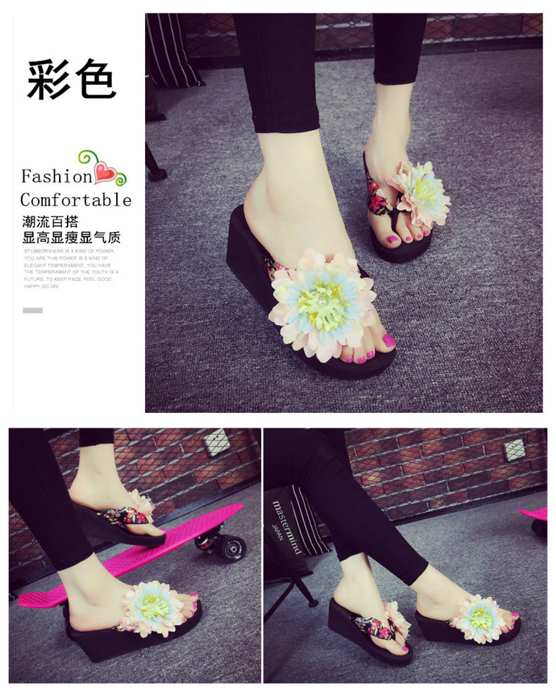 新款韩版厚底人字拖防滑坡跟凉拖鞋女夏时尚高跟沙滩鞋外穿