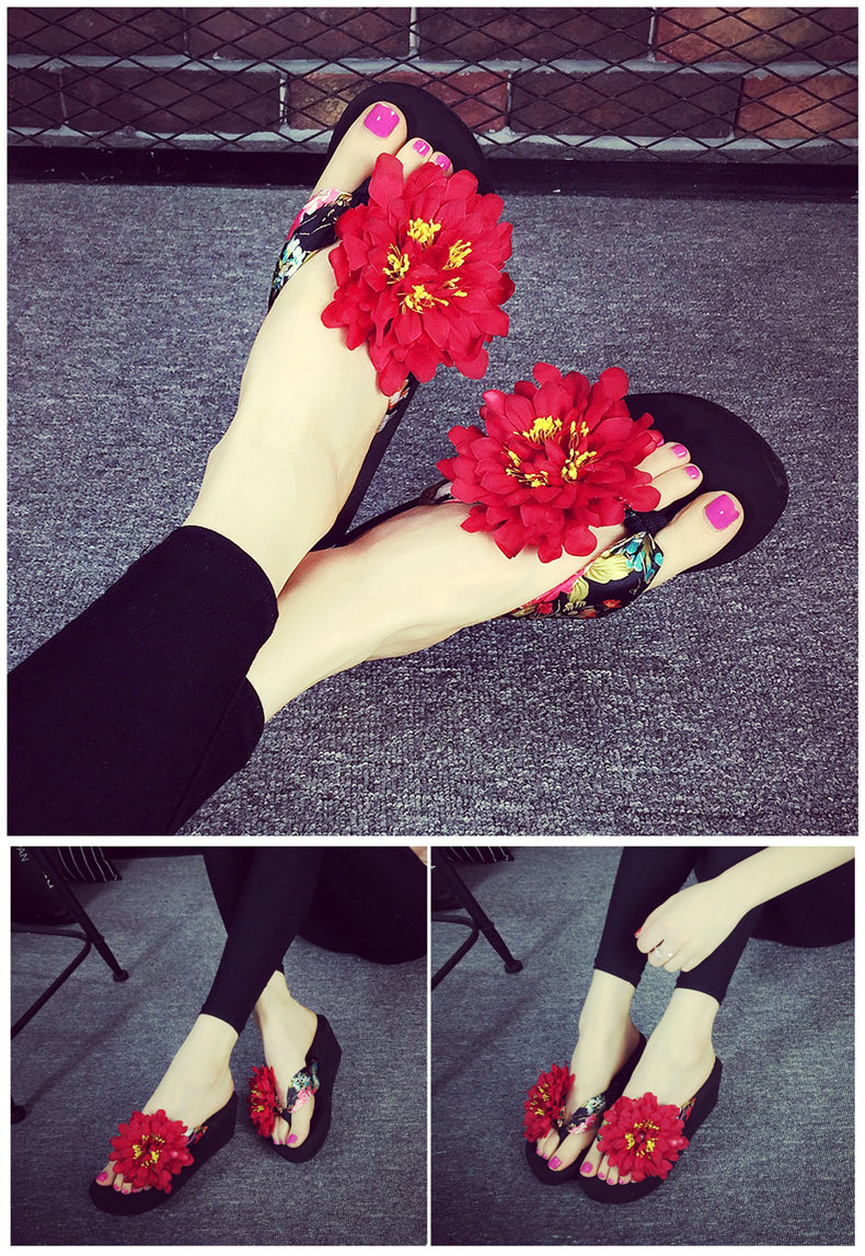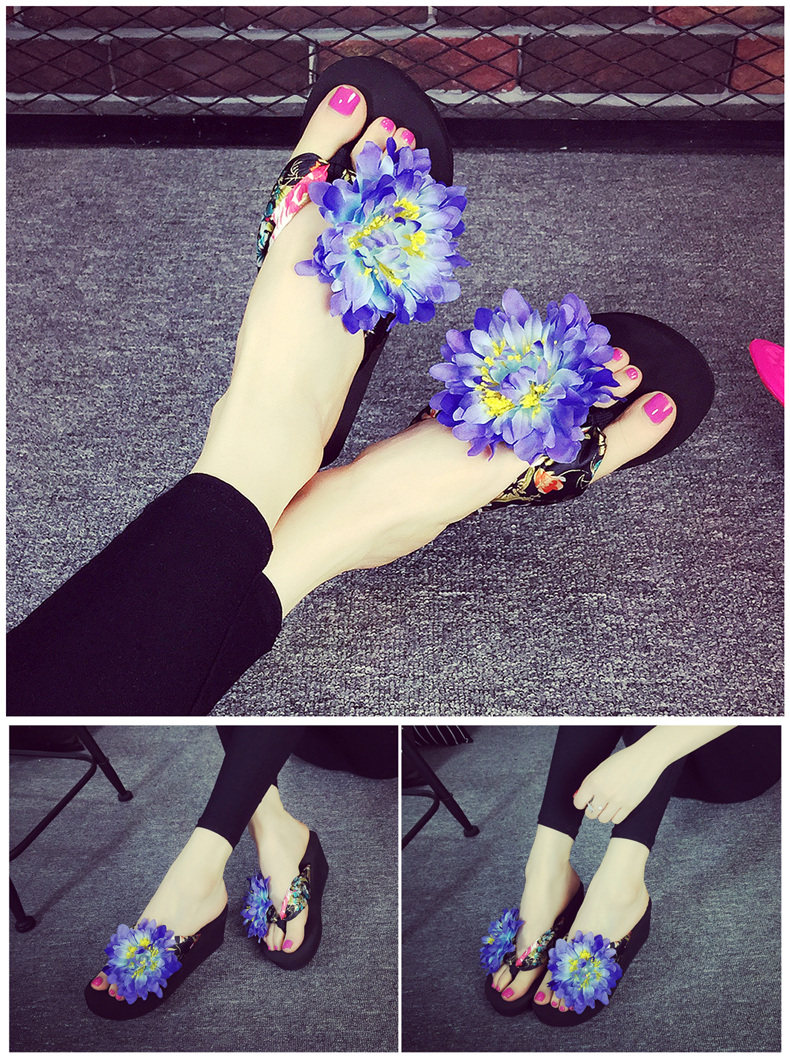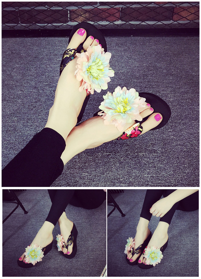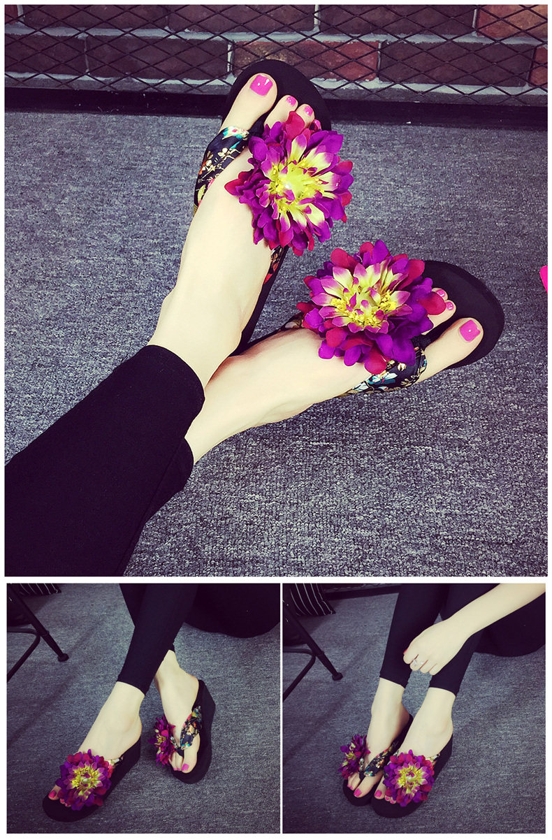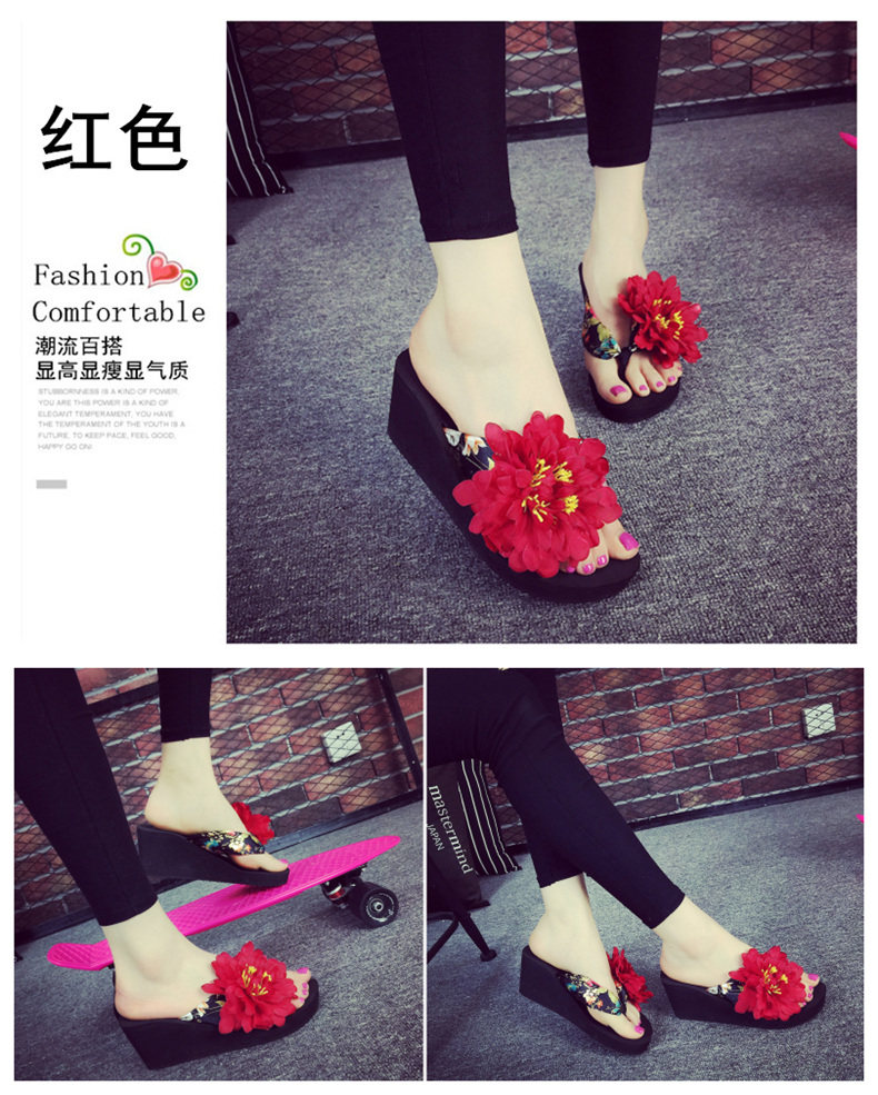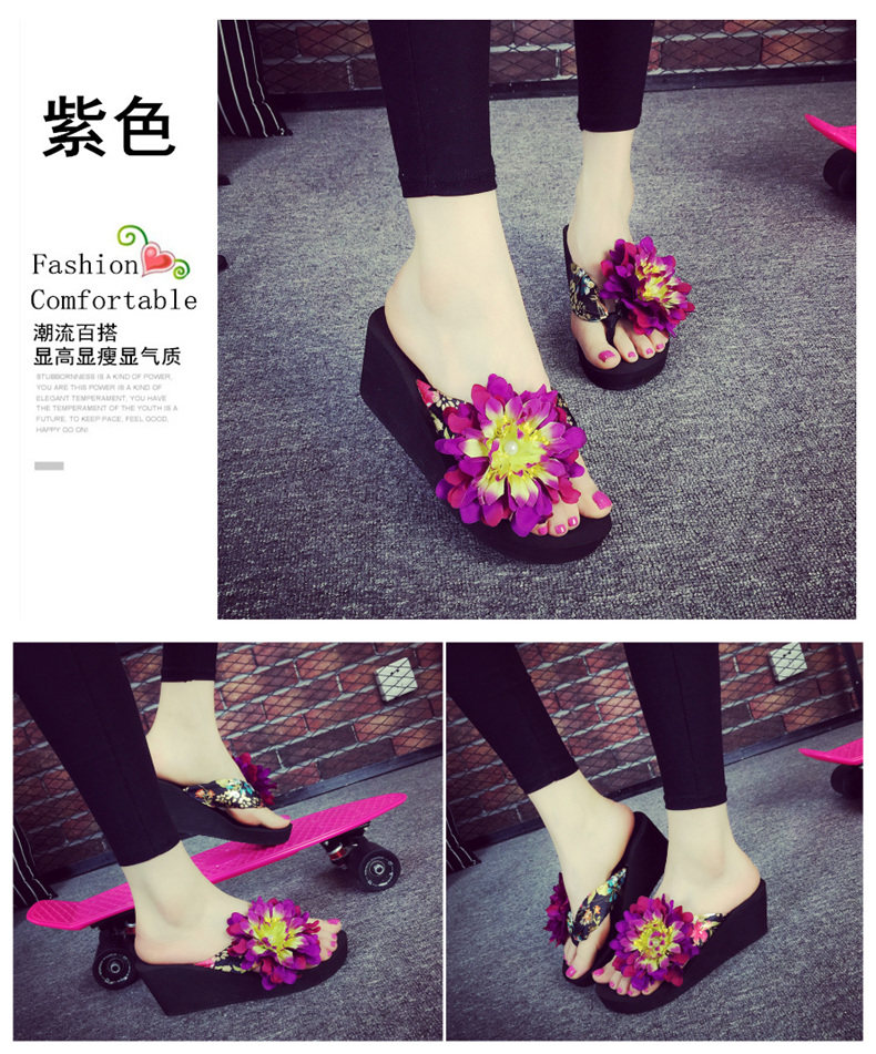 新款韩版厚底人字拖防滑坡跟凉拖鞋女夏时尚高跟沙滩鞋外穿