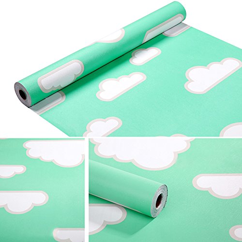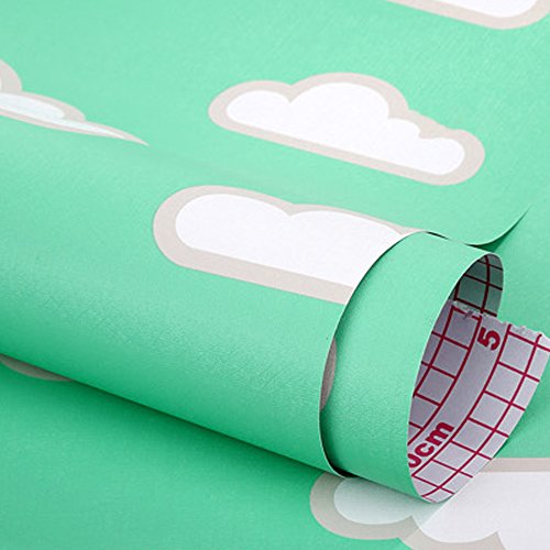-. Title : SimpleLife4U Green Sky White Clound Contact Paper Removable Shelf Drawer Liner Self-Adhesive Rent House Cabinet Decor Sticker 17.7 Inch By 9.8 Feet