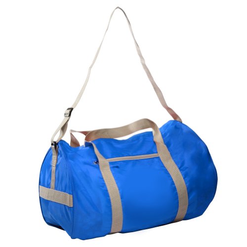 -. Feature : perfect as a gym bag because it can carry clothing, shoes, a towel and even a ball or other sporting equipment with ease / Shoulder strap and two handles for balance and easy carry-by-hand / Fits in small lockers, under most chairs, in overhead compartments and even on your lap as you sit. / Material: 600D polyester, Lightweight and Durable / Blue Size: 11"H x 18"W x 11"D