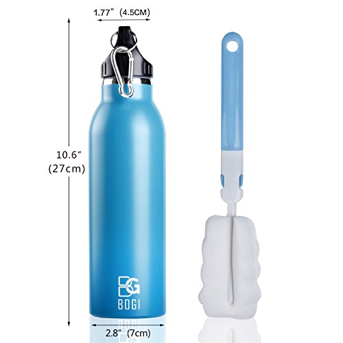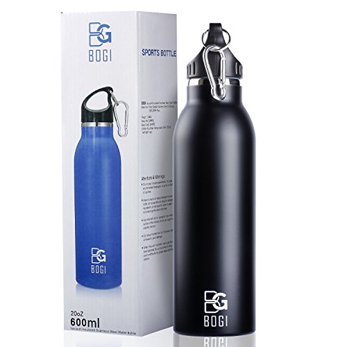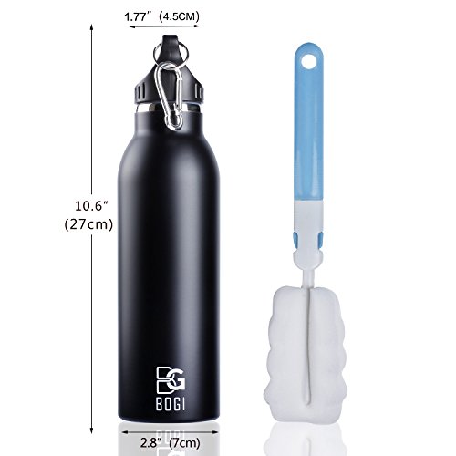 -. Title : BOGI 20oz Insulated Water Bottle Double Wall Vacuum Stainless Steel Flask Leak Proof keeps Hot and Cold Drinks, Cap with Carabiner Clip for Outdoor Sports Climbing Camping Hiking + 1 Cleaning Brush