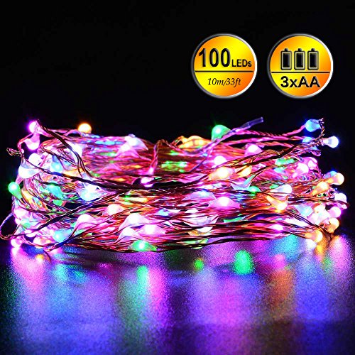 Monlance Dimmable String Lights,Party and festival decorations,100 LEDs in 33 Feet Copper Wire,Multi-color(RGB),Battery Operated Lights