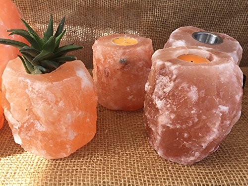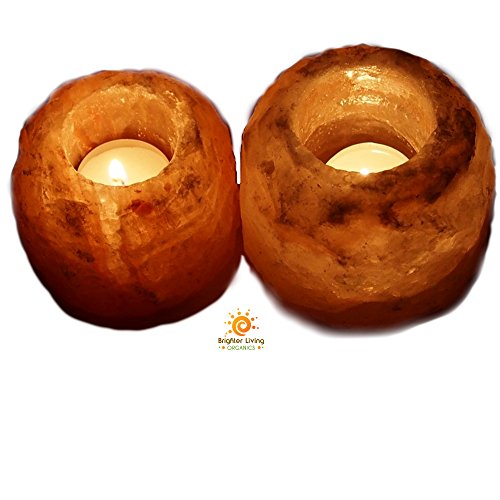 Brighter living Organics: Himalayan Crystal Salt Rock Tealight- Candle Holder - Hand Carved - Natural Shaped - 2 Pack …