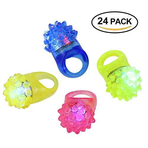 24 Pack Novelty Flashing LED Bumpy Rubber Rings for Party Favors, Zilong Colorful Light Up Toys Glow In The Dark Jelly Rings Finger Toy