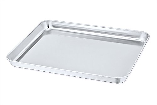 Studio : PP Chef Publisher : PP Chef Product Description PP Chef Stainless Steel Toaster Oven Tray Pan Bakeware, is made of high quality 430 18/0 stainless steel without any coating or other materials. This pure stainless steel oven pan is healthier for your daily use and help you get rid of toxic aluminum products. No more toxic substance into your food unconsciously. Perfect size for moderate baking or broiling such as veggies, meats, breads, potatoes or your favorite desserts. Smooth mirror finish helps this small oven pan easily release the food and clean up even in hand wash. Dishwasher safe.
