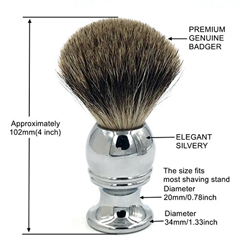 100% Pure Badger hair shaving brush with Outstanding Quality Elegant Silvery Alloy Handle, Creates a perfect, creamy, rich lather for your face.