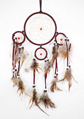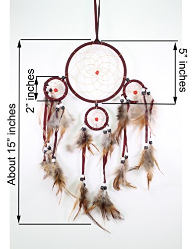 Handmade Dream Catcher With Feathers Wall Hanging Decoration Ornament Gift (Wine Red)