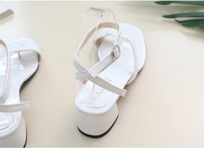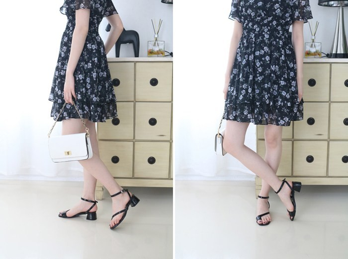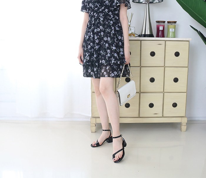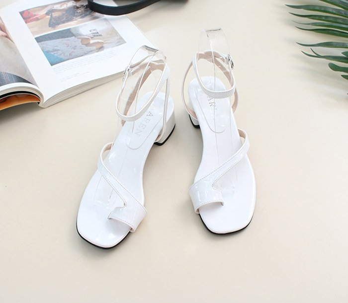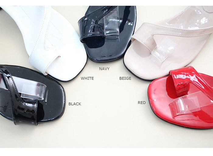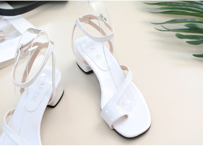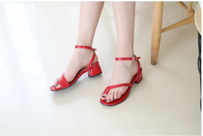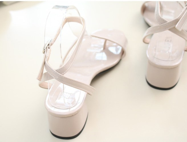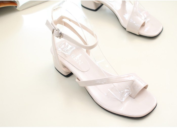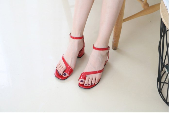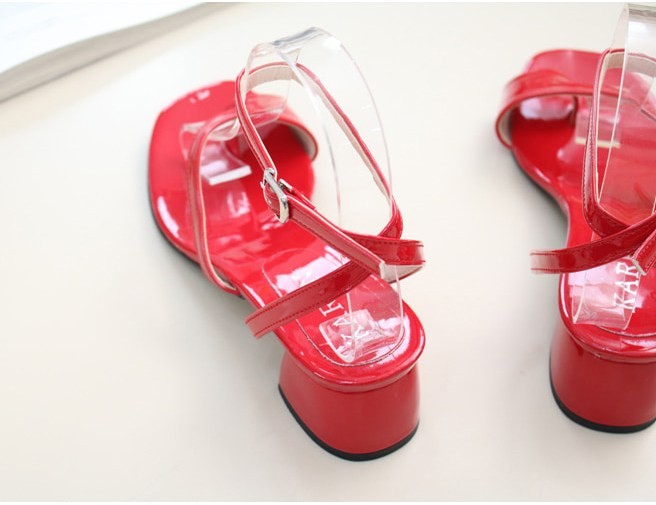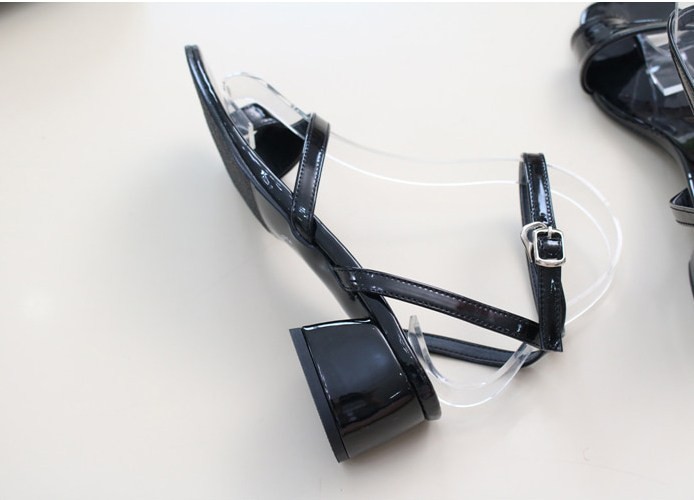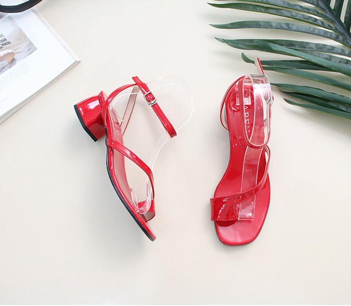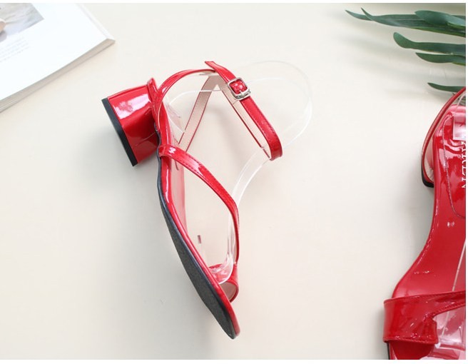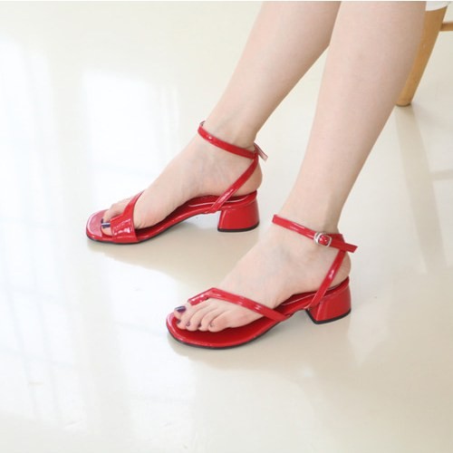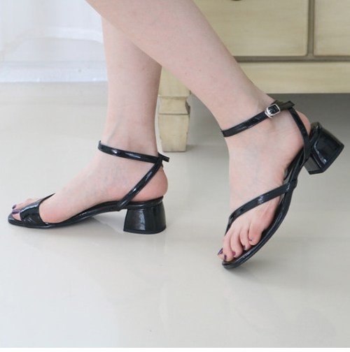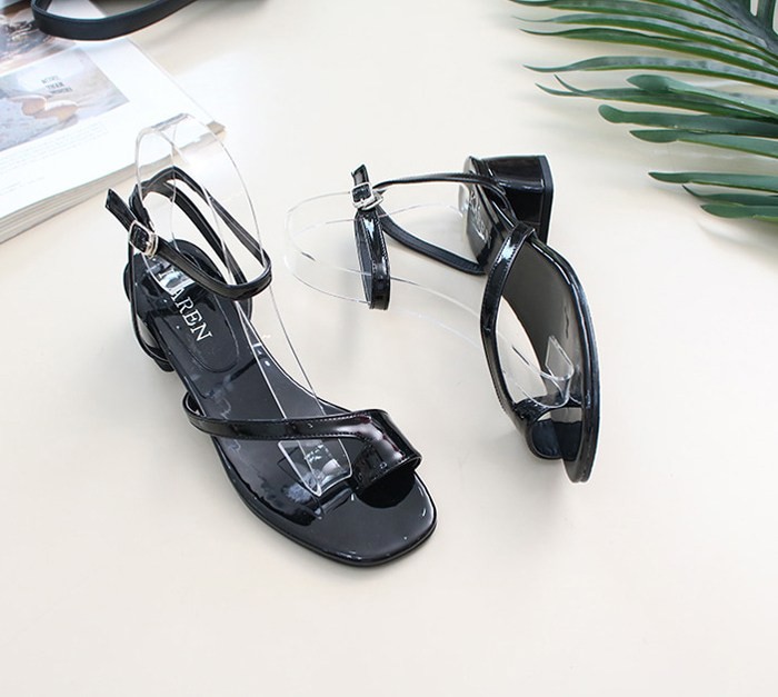 商品名:サンダル レディース 太ヒール チャンキーヒール エナメル調 アンクルストラップ ミドルヒール 2018 夏 ファッション 靴 婦人靴