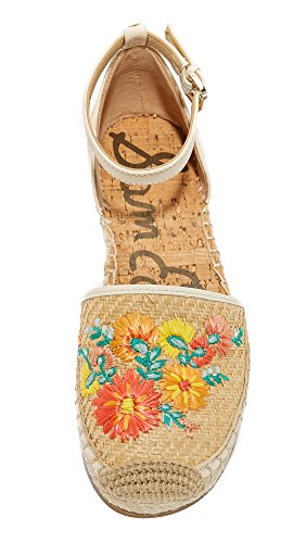 Product DescriptionColorful embroidered raffia updates these leather Sam Edelman espadrilles. Leather ankle strap with inset elastic and buckle closure. Braided jute platform and rubber sole.0