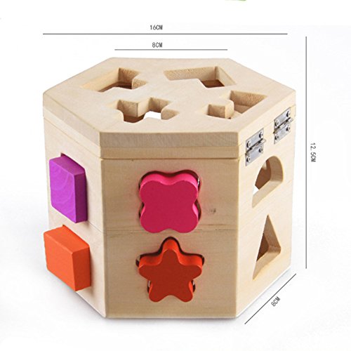 -. Binding : Toy -. Brand : Darius -. EAN : 0647971059103 -. Feature : ✔Classic Educational Toy for Toddlers-Each shape fits through a hole of the same shape on the wooden cube / ✔Promotes color and shape recognition and problem-solving skills / ✔Help your baby learn a variety of geometric shapes, stimulate the baby's ability to observe and mathematical potential / ✔Sort out Fifteen vibrant, chunky blocks that slip right into their matching, form-fitting holes / ✔Let your baby exercise hand-eye coordination when baby rotate color blocks, training baby's patience and concentration. -. Genre : Strategy -. IsAdultProduct : 0 -. Label : Darius -. Manufacturer : Darius -. MPN : 9774824 -. PackageQuantity : 1 -. PartNumber : 9774824 -. ProductGroup : Toy -. ProductTypeName : TOYS_AND_GAMES -. Publisher : Darius -. Studio : Darius -. Title : Darius 15 Holes Hexagonal Intelligence Box Shape Matching Blocks -. UPC : 647971059103