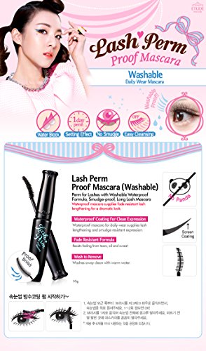 -. Feature : Etude House Lash Perm Water Proof Mascara (Washable) / Formulated with Triple Coating Film, / Lash Perm Proof Mascara supplies precise lash definition ans weightless volume with its unique waterproof formula that won't cause tears or sebum.