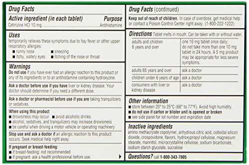 -. Feature : Get allergy relief that starts working faster than Claritin on the first day you take it / Cetirizine HCI Orally Disintegrating Tablets 10mg/Antihistamine / Indoor plus outdoor allergies / Melts in Your Mouth / Citrus Flavor