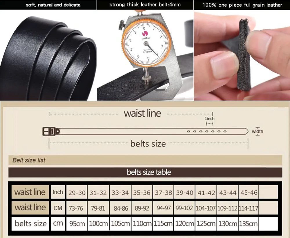 Belts Material: Full grain 100% genuine leather