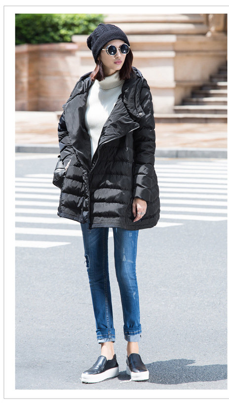 这款羽绒服,简洁的A字廓型,将上身很好包容,